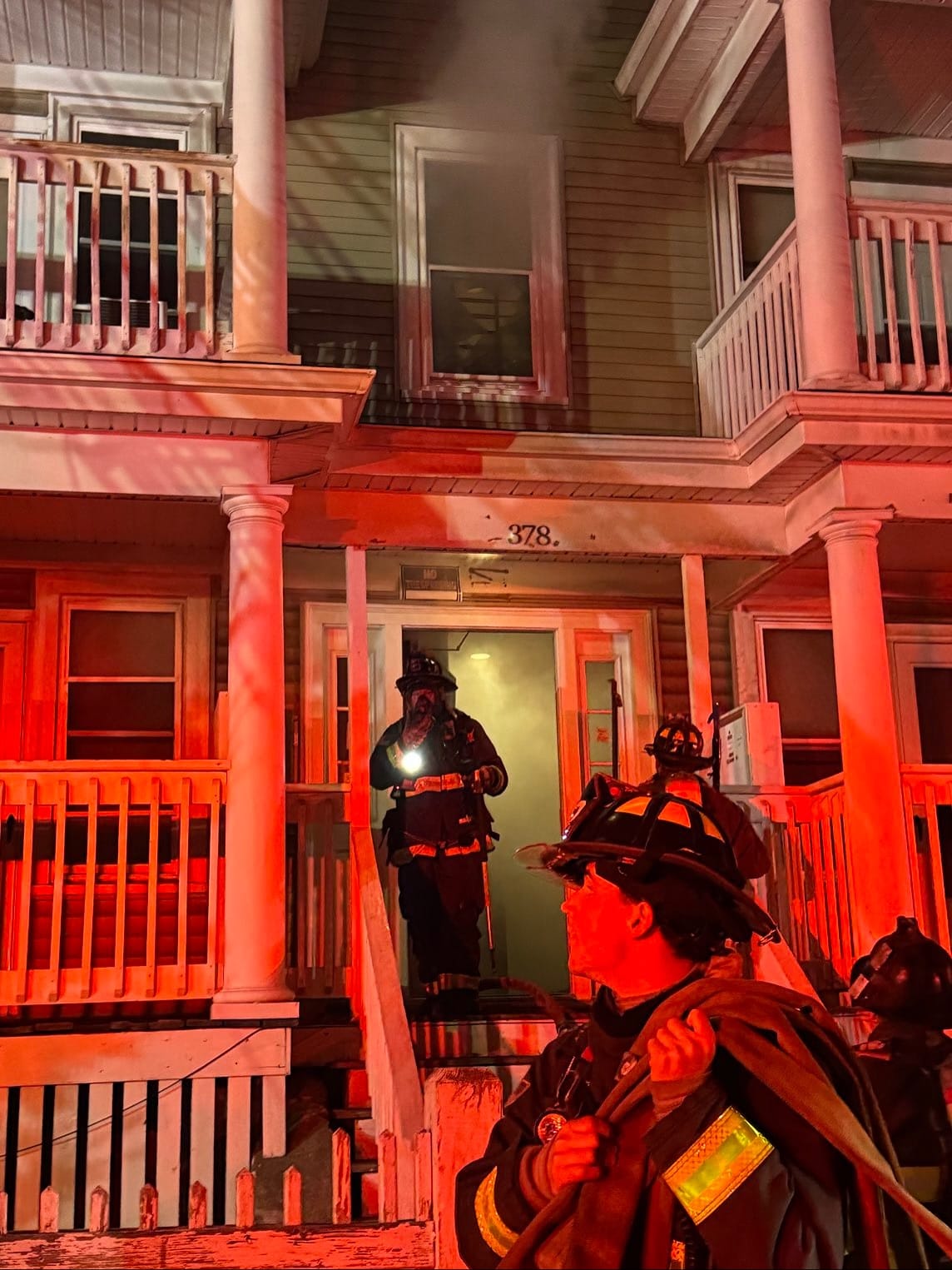 Boston, MA – At approximately 4:45 a.m. on Sunday, the Boston Fire Department responded to reports of a building fire at 378 Centre Street. Fire companies arrived to find heavy flames consuming the rear porches of a six-family residence, with fire already extending into an adjacent six-family structure.