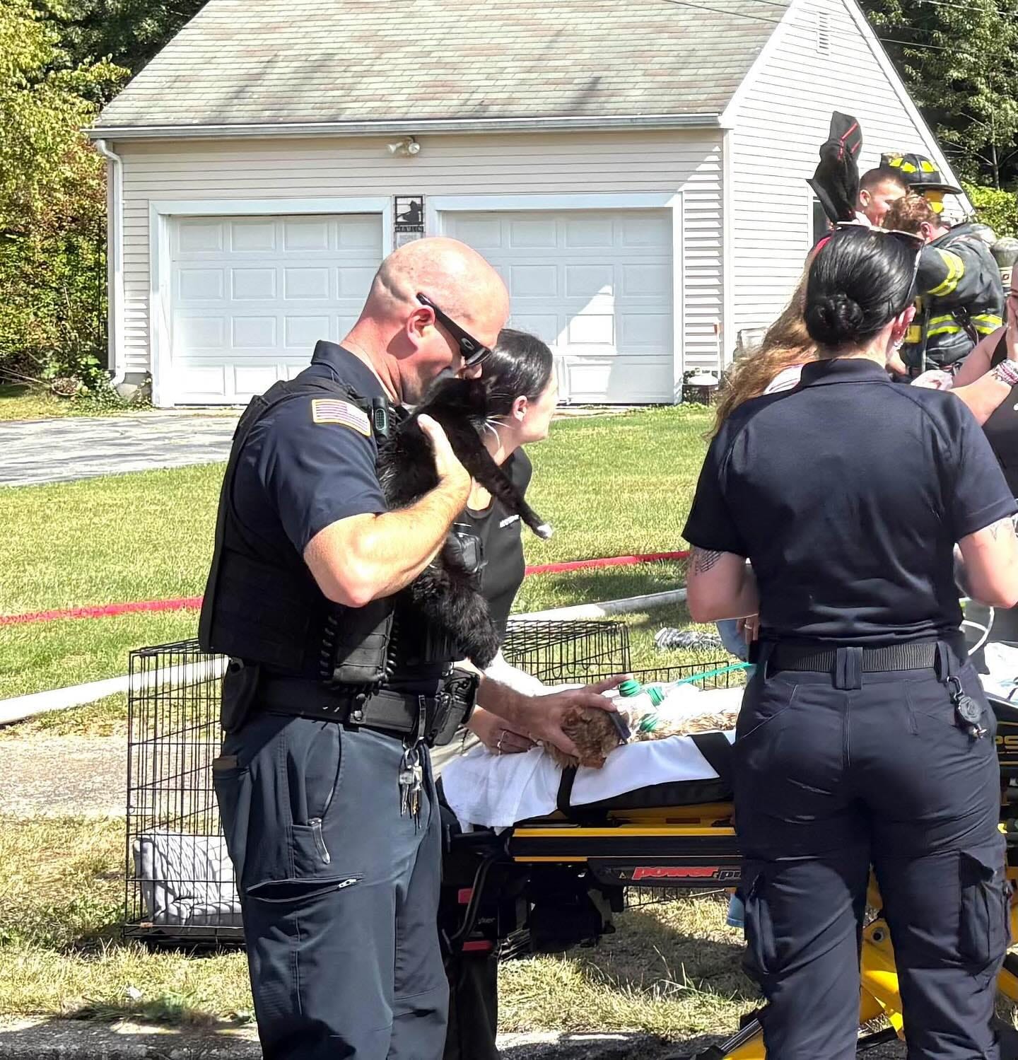 In total, five cats and three dogs were rescued from the property. Several of the animals required immediate resuscitation with oxygen at the scene before being transported to Tufts Animal Hospital for emergency care.
